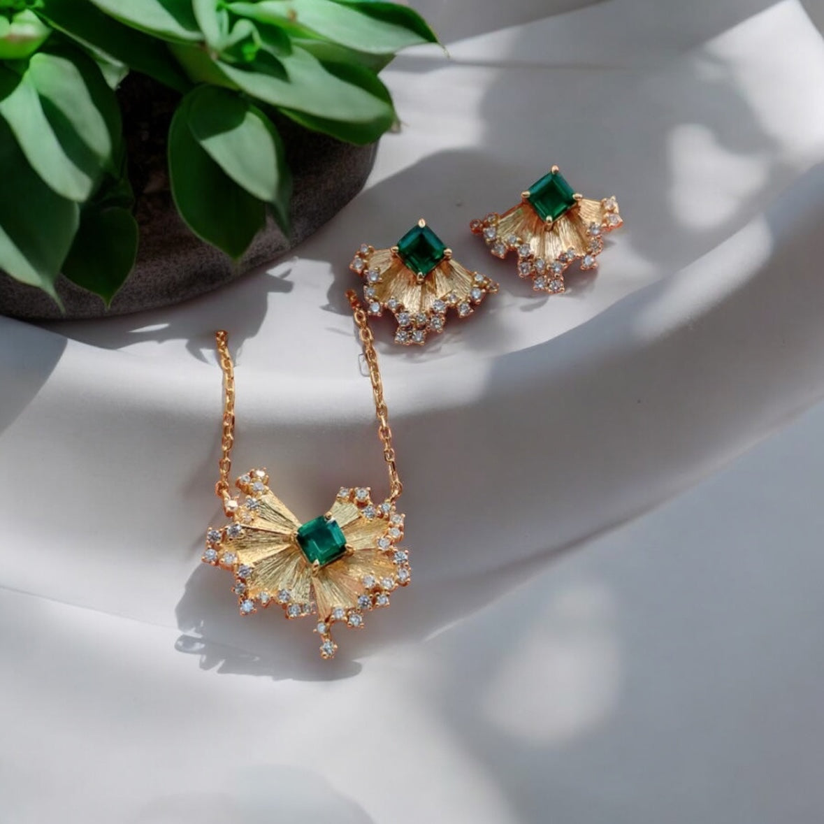 Expertly crafted from high-quality Italian silver, this elegant earrings and necklace set shines with exquisite beauty. The addition of brilliant green zirconia adds a touch of luxury and sophistication, making it the perfect accessory for any occasion. Elevate your style and make a statement with this stunning Italian silver set.